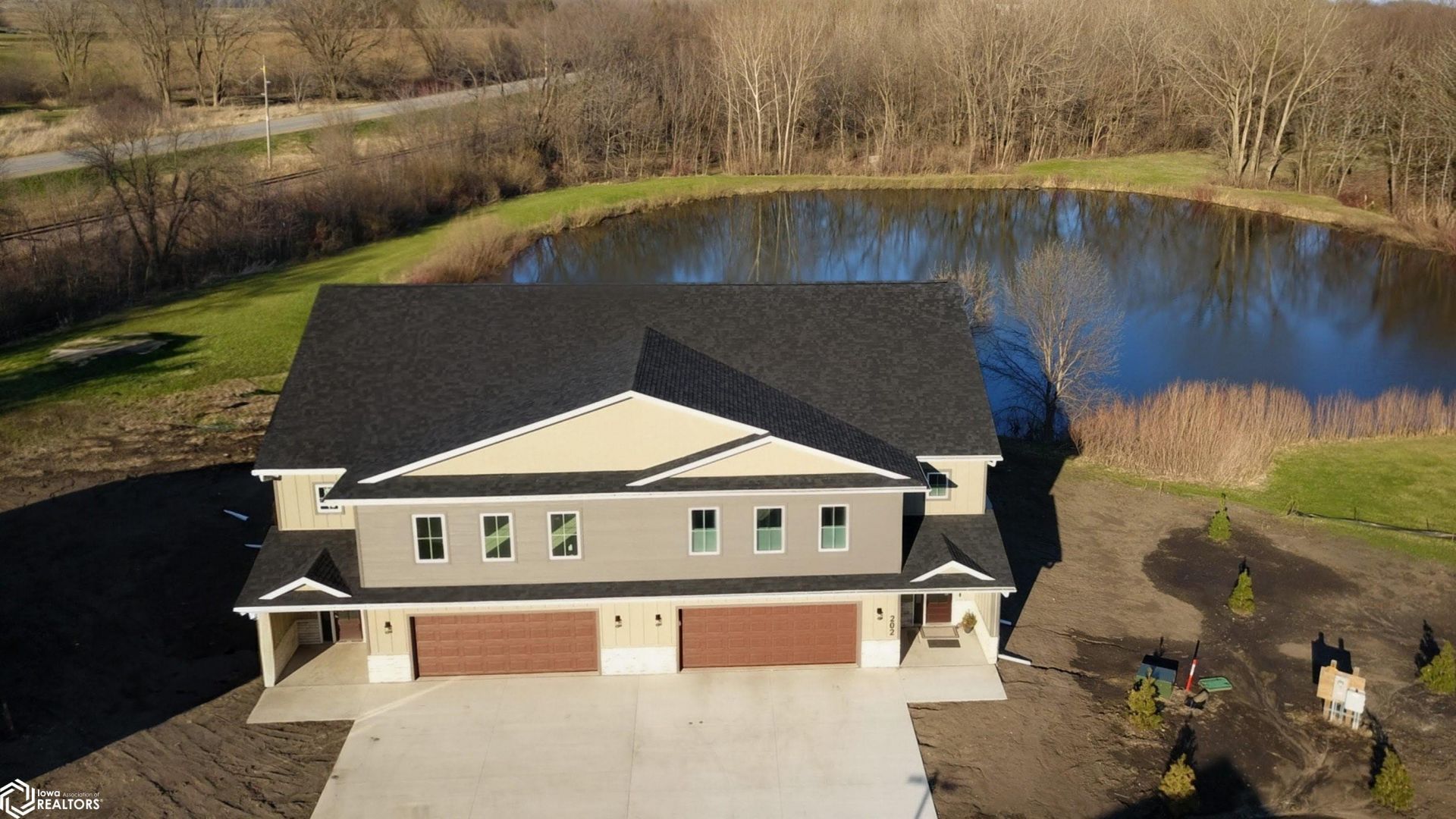 Step into the final 3,100 sq ft unit at StoneBrook Condominiums?framing is complete and it's ready for your custom finishes! This one-of-a-kind 3-bedroom, 3-bath condo is part of a desirable two-unit standalone building, with the adjacent unit already sold. Don't miss your chance to secure the last available unit and choose your personal finishes to make it truly your own. The open-concept main floor boasts 9' ceilings, a shiplap gas fireplace, quartz countertops, custom cabinetry, solid-core 3-panel doors, and LVP flooring. The kitchen features a central island and walk-in pantry, ideal for cooking and entertaining. Upstairs, the oversized primary suite offers two walk-in closets, dual vanities, and a tiled walk-in shower. Two additional bedrooms share a Jack & Jill bath, while a large laundry room with built-in cabinetry and a versatile loft provide extra space and functionality. Step outside to your patio overlooking a serene pond, and enjoy a driveway that fits 3+ vehicles. Modern comforts include in-floor heat on the main level and garage, plus an on-demand water heater. The HOA covers lawn care, snow removal, garbage, sewer, and exterior maintenance, ensuring a worry-free lifestyle. Additional perks include a 5-Year Tax Abatement and optional Freedom Boat Club membership, joining fee included. Located near All Vets Golf, McIntosh State Park, and Hwy 18W, this unit offers the perfect blend of luxury, convenience, and lake lifestyle. (Interior Photos of Unit 101)
