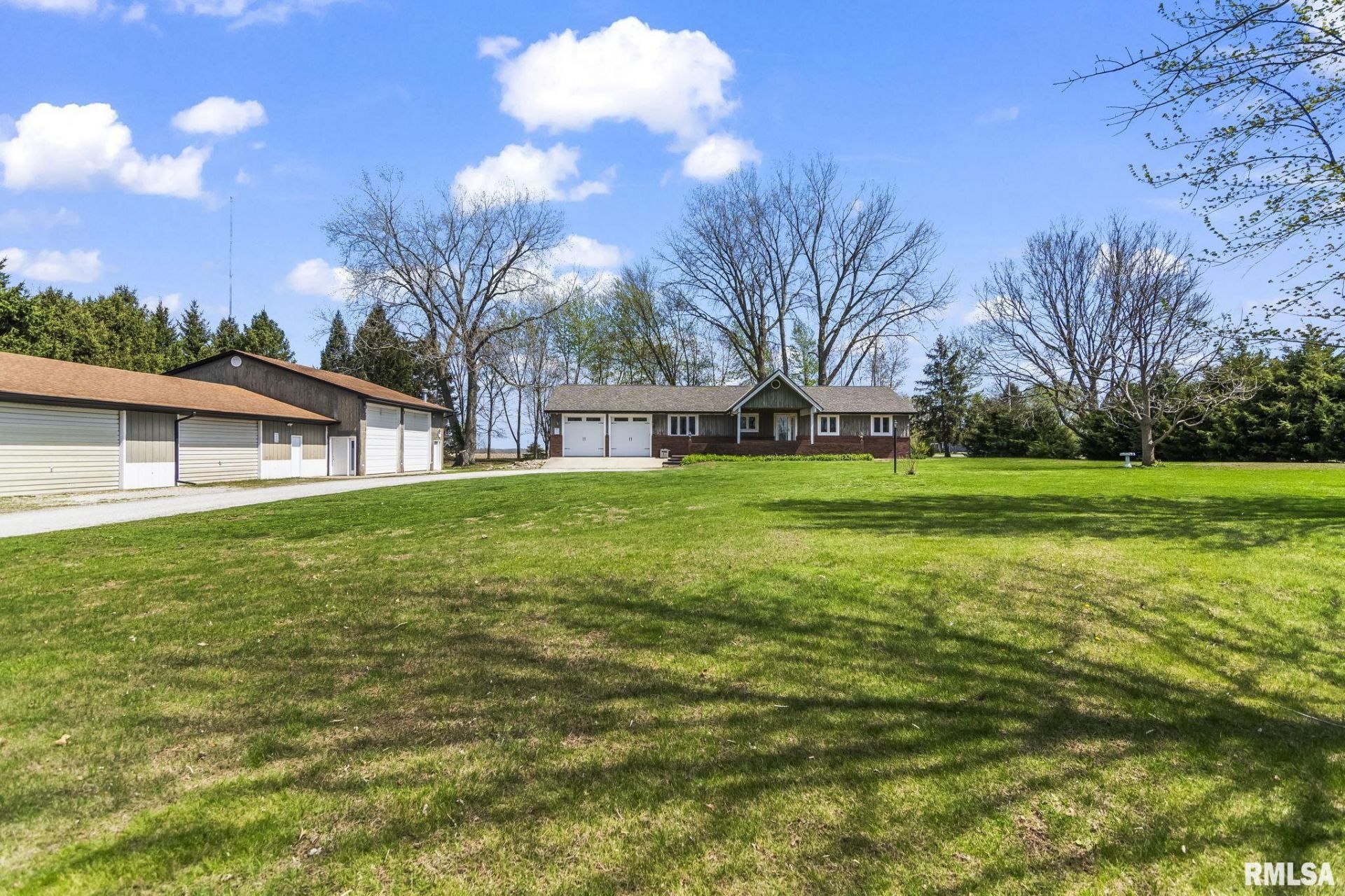 A rare find! This sprawling 3 bedroom, 2 bath ranch sits on just under 2 acres in the highly sought-after Rochester school district. The property offers incredible versatility with a 2 car attached garage, a 4 car detached garage with workshop, and a large heated outbuilding featuring 13 ft doors and 220 electric; perfect for RV storage, indoor sports, or even accommodating a semi. Enjoy peaceful mornings on the back deck overlooking open fields, surrounded by mature trees for added privacy. This custom built home features a spacious eat-in kitchen with stainless steel appliances, a sunken family room with a gas fireplace, and a huge great room with elevated ceilings and beautiful hardwood floors. The primary suite offers two closets, and the finished lower level adds even more living space with a dry bar, a wood burning fireplace, rec area, full bath, and an impressive utility room. Additional highlights include 2x6 construction, a roof replaced in 2022, newer garage doors on the attached garage, and some updated windows. The property is pre-inspected and being sold as reported. Step right onto the bike trail running along the road, perfect for outdoor enthusiasts. Endless possibilities await with this one-of-a-kind property!
